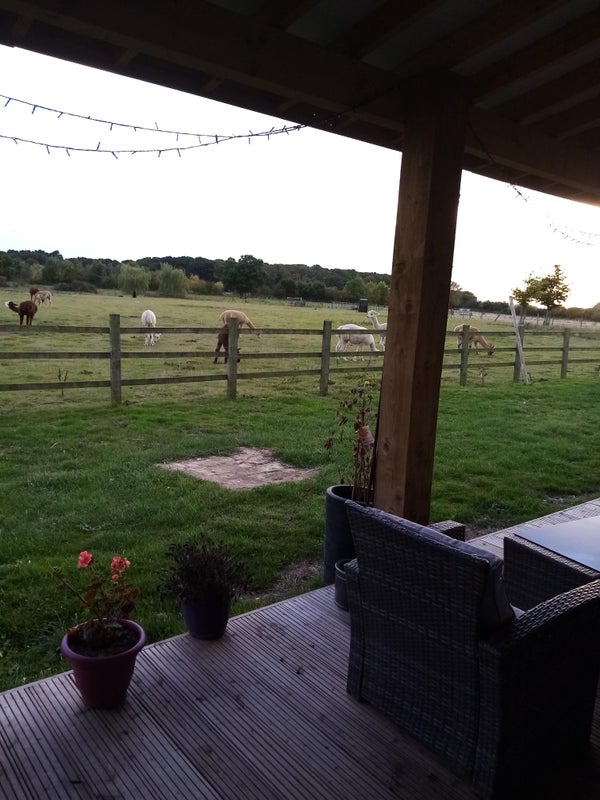 This is a property in a rural location. The room is big enough for a sofa and TV. There is one dog at the property but not allowed into the main living spaces. Calm, relaxed atmosphere and lovely views. Share of the kitchen and veranda with lots of seating areas. Own fridge.