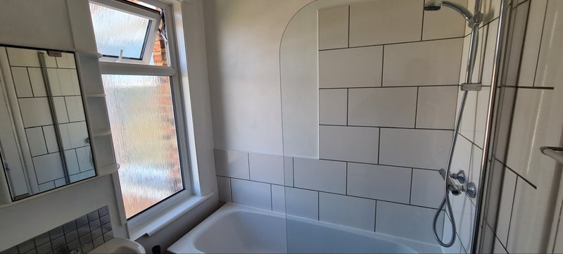 Upstairs rear bedroom with separate private bathroom, with bath and shower over