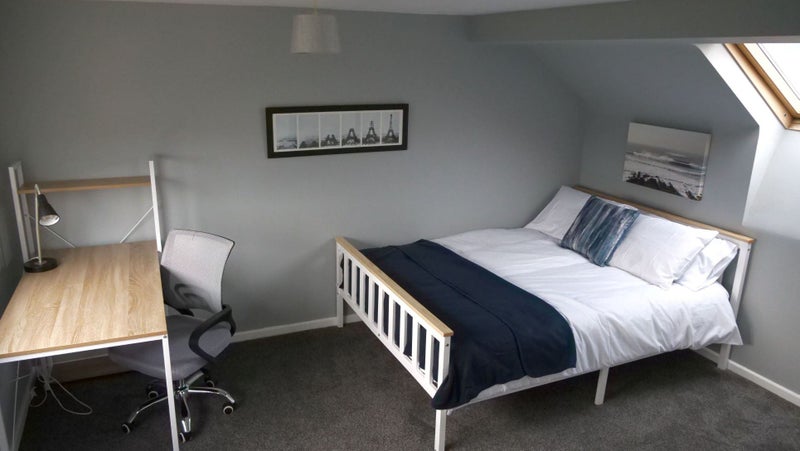 Room 5 (16.2m2 inc. ens.) This spacious room on the second floor, with a blue theme, overlooks the back garden with a velux window to the front and has a double bed.