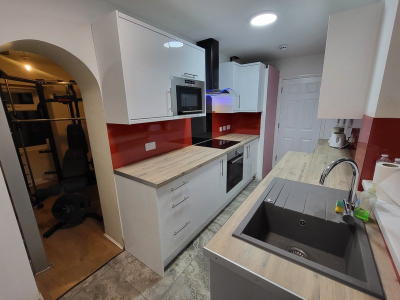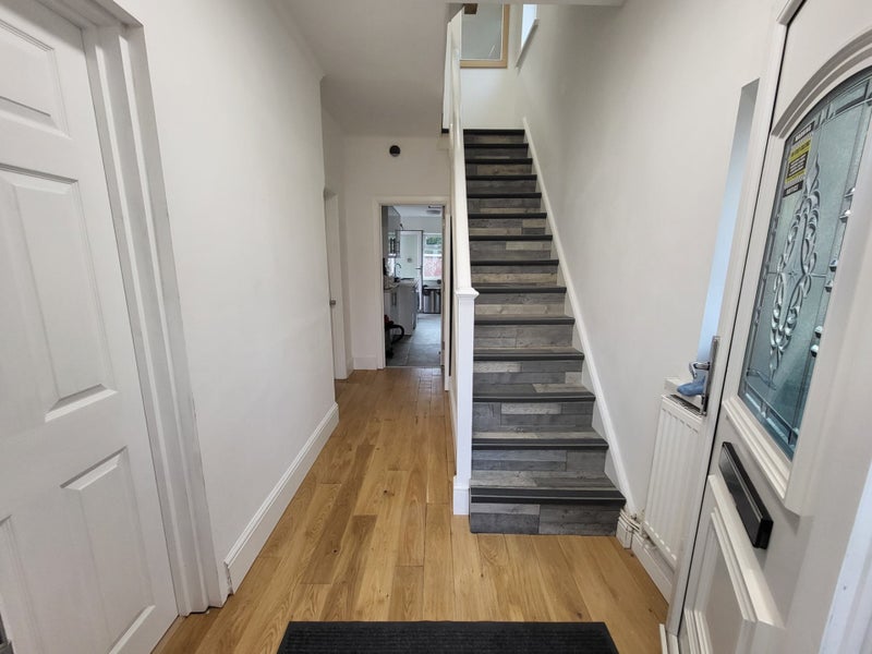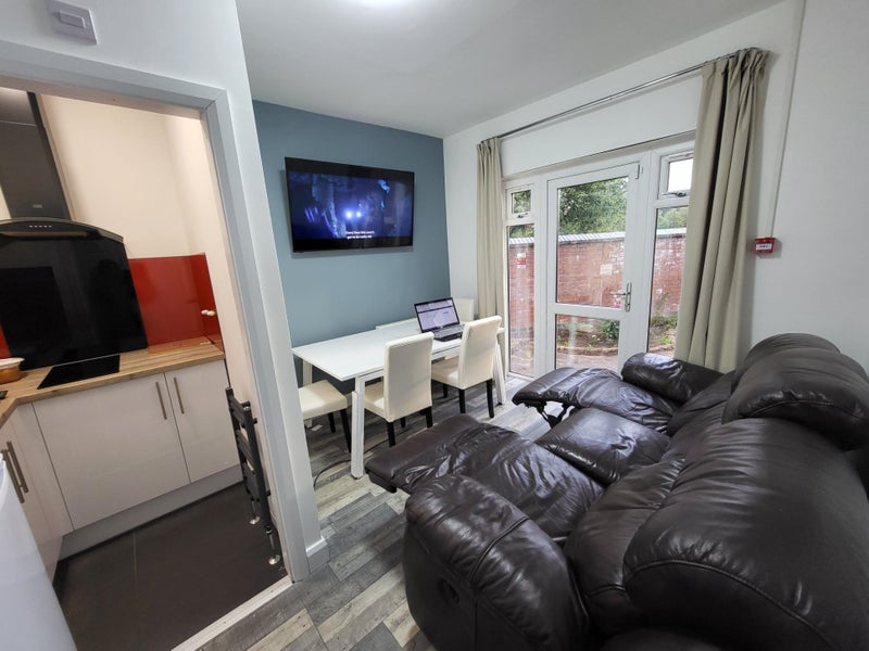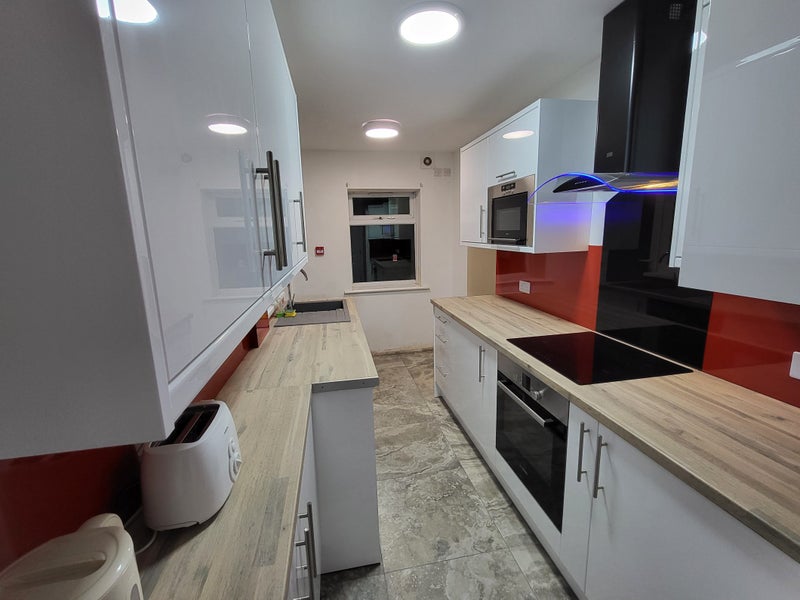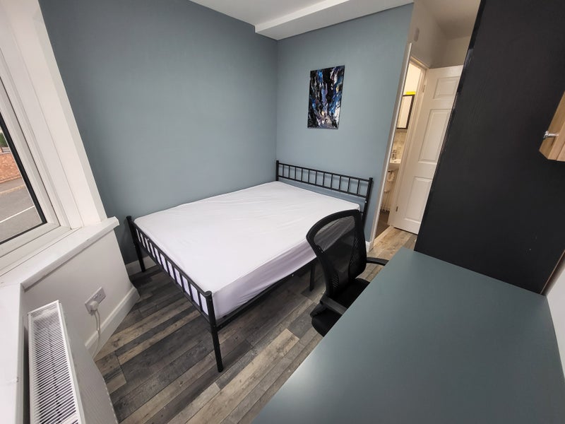 Double room with en-suite. Double bed sprung and memory foam mattress, in-room fridge, wardrobe, desk/chair/lamp, remote controlled, RGB, multi colour App and Alexa ready LED lighting. Huge bay window for applet natural light and garden/park/city view. Private fully equipped Gym for the fitness lovers and private parking if you have a car. The house is near the Uni, the town centre, 5 min walk from Lidl, Iceland and high street, and 2 min walk from the buss stops. All bills included in the rent. All the lighting in the common areas and the en-suites are sensor/automatic. High safety Fire doors and Panel/Zone fire alarm system, All the walls, floors and ceilings are sound/heat insulated for absolute privacy and warmth. The living/dining room has a 3 seater electric recliner sofa, large 55" Smart TV, dining table and chairs. There are 2 kitchens with 2 sinks, 2 hobs, oven, microwave, washing machine and tumble dryer. Access to garden from the living-room and the kitchen, with flowers, loan, 2 tables/benches and BBQ. All the floors and staircases are brand new, wood, laminate and tiles (no carpets which have bacteria and can cause irritation and allergic reactions). The WiFi is Virgin superfast, over 500 Mbps, positioned in the centre of the house for equal signal strength in every room. The brand new fire alarm system is a professional zoned panel system with smart sensors and call points. Rent £625PCM. Utilities, council tax and Virgin super fast 500MBs broadband, included in the rent.