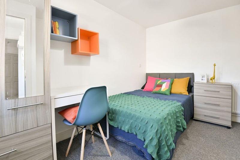 Room Features: Each room is designed for comfort, with a private en-suite (shower, toilet, sink), memory foam mattress, desk, chair, wardrobe, bedside drawers, and TV & Ethernet points.