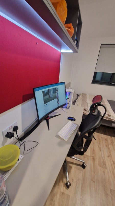 Well refined and insulated bedroom with plenty of light coming through, ample storage space and a large wardrobe for clothes. Ensuite bathroom with automated LED's as well as a large and spacious shared kitchen, a TV and automated lights upon entry. Finally elsewhere on the property is an available cinema room, a small gym, study spots at the reception with a vending machine as well as a small outside social space.