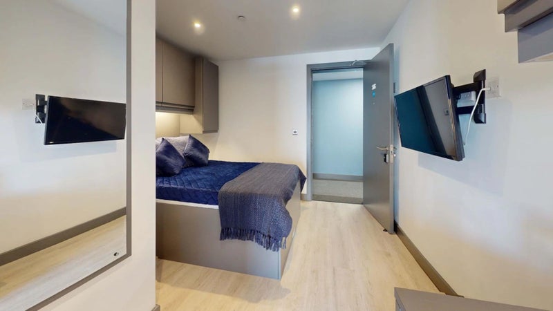 For students who desire a private bathroom and kitchen, we provide the perfect solution with our range of luxurious studios, from the Premium Studio to the Premium Mezzanine Studio. Our spacious social areas include a stunning private cinema room and fitness suite, a gaming lounge for spending time with friends, an exclusive roof terrace, and beautifully landscaped courtyards for unwinding.