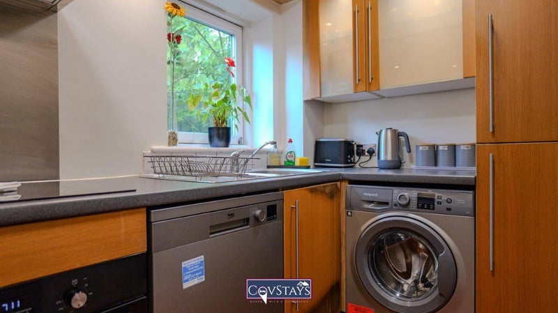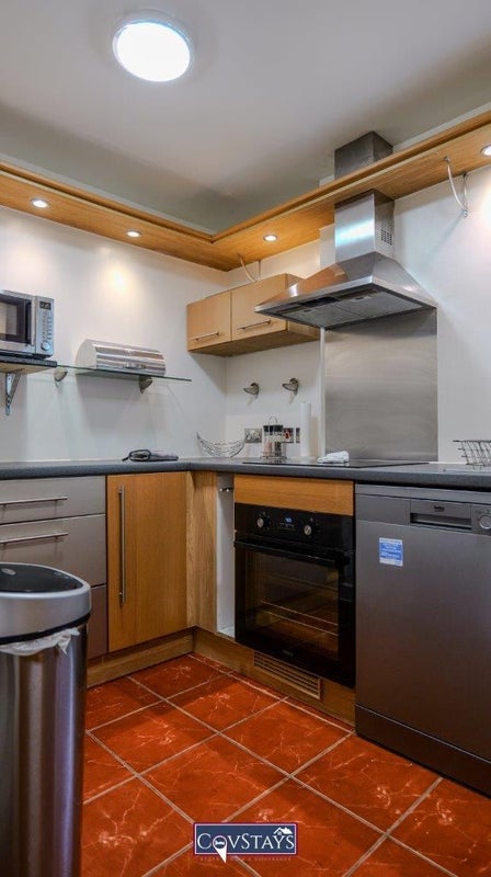 Bills included. A modern, and bright luxury apartment on the 1st floor accessible via a lift directly from a secure, gated basement car park. Our spacious apartment mean everyone gets their own space to relax. 2 double bedrooms. Kitchen and bright living room with balcony. The master bedroom features a king bed and en-suite shower. The kitchen has a fridge/freezer, washing machine, integrated dishwasher, oven, ceramic hob and microwave. Ultra-fast Wi-fi and Netflix available.