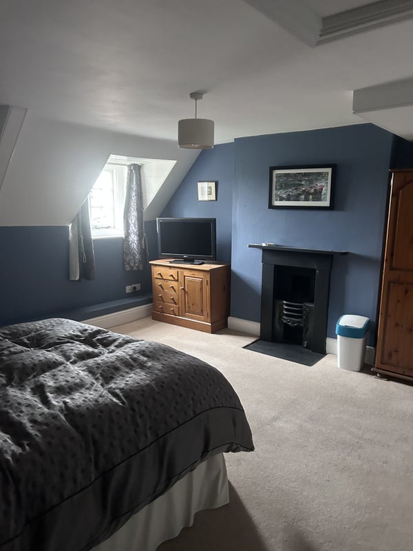 The ensuite room is fully furnished and has a king size bed. There is a bath with shower over, sink and toilet. All bed linen and towels are provided. The room overlooks countryside and has a smart TV. Facilities include a comfortable TV lounge, well equipped kitchen diner with all appliances, (landlords have their own kitchen) broadband and plenty of off road parking.