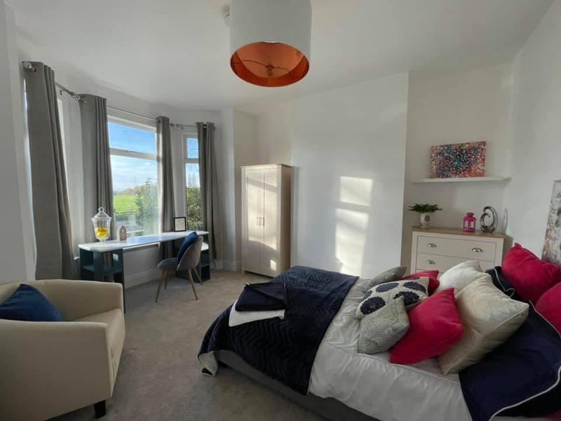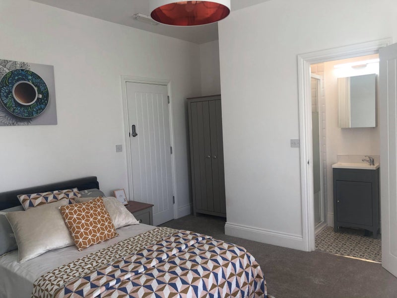 Large Double Bedroom, with beautiful ensuite for single occupancy, available in stunning 5* High End Earlsdon House with ottoman double beds and gorgeous furniture.