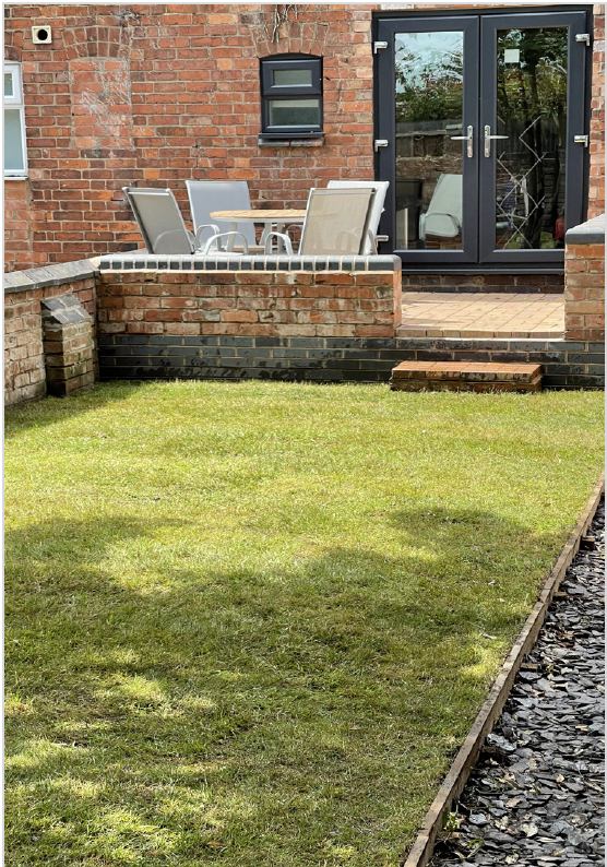Sofas, chairs and soft furnishings, dining table and 50” Smart TV. Landscaped garden area with new outdoor furniture and seat cushions.
