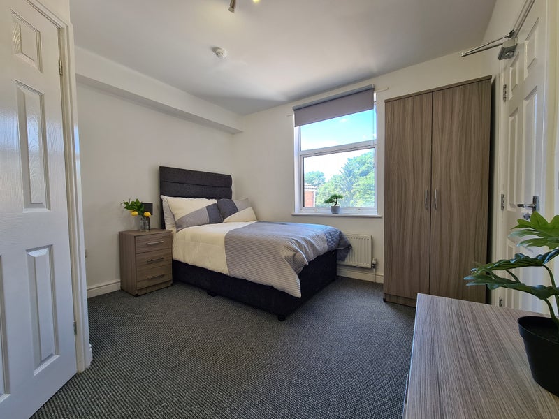 This property has been completely refurbished, with attention to detail throughout. Each room is kitted out with a double bed, wardrobe, drawers, bedside table and food prep/ desk area with under counter fridge and DRY FOOD STORAGE CUPBOARD and FRIDGE.