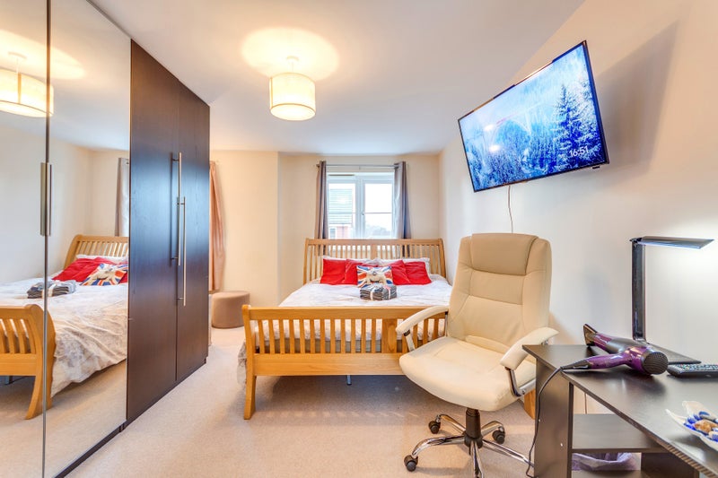 Fully furnished super king bedroom with en suite bathroom and a fully fitted private kitchen on the same floor, including washing machine and dryer, in a modern new-build home on a private cul-de-sac in Erdington, B23.
