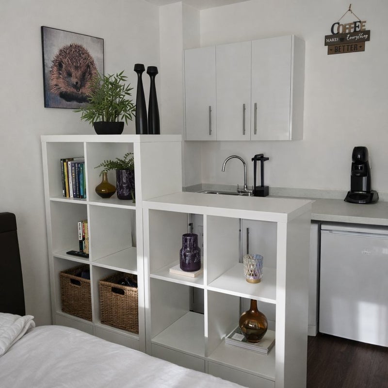 The room would suit a working professional who is out at work during the day and looking for a quiet, well equipped space in which to relax in the evening.