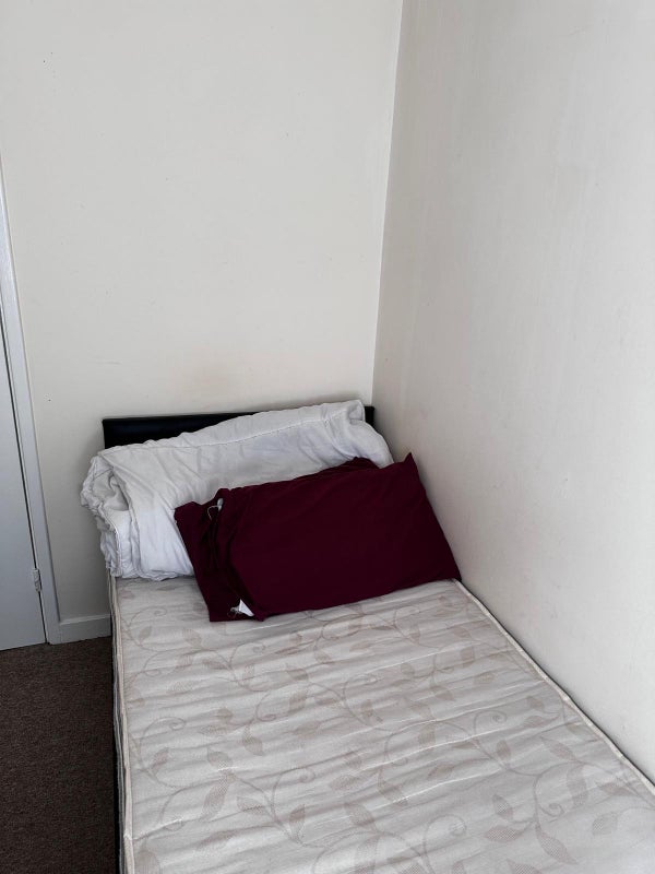 The single bedroom has only a bed and a wardrobe.