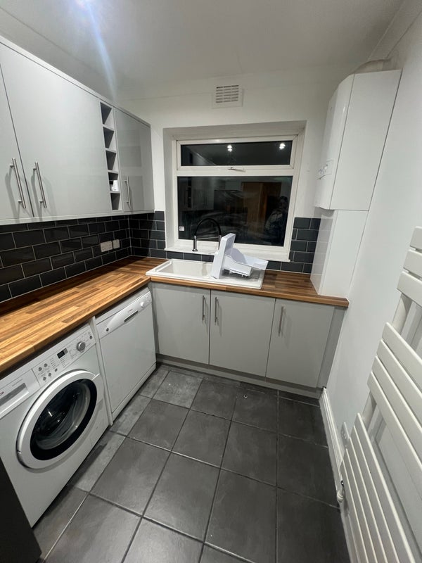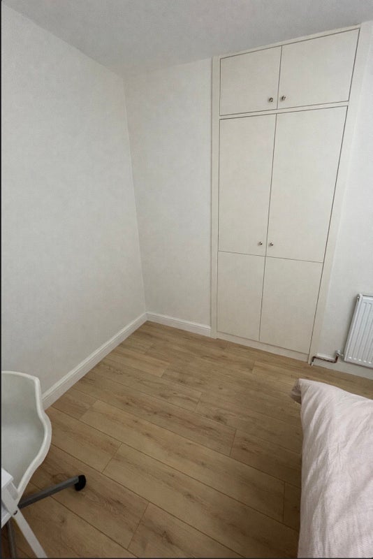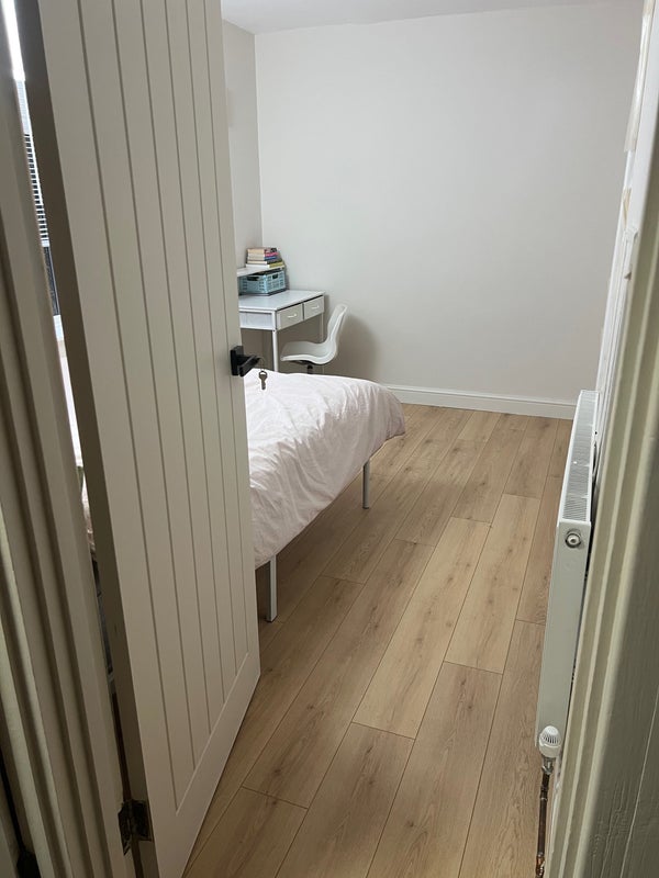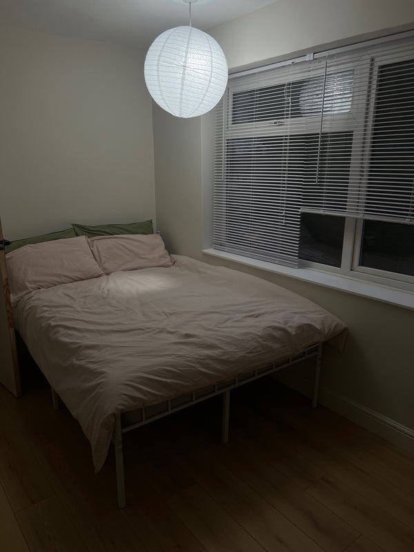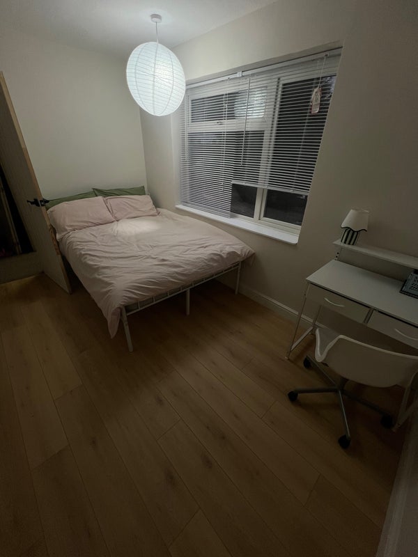Very spacious, bright and fully furnished house. The double room is bright and faces the garden. It has recently been fully refurbished with a brand new mattress. The room comes with a double bed, built in wardrobe, desk and chair. The kitchen also has a dishwasher, washing machine and large American style fridge freezer. There is a large shared living room, dining area and small storage cupboard for extra storage. A large garden and drive for parking.