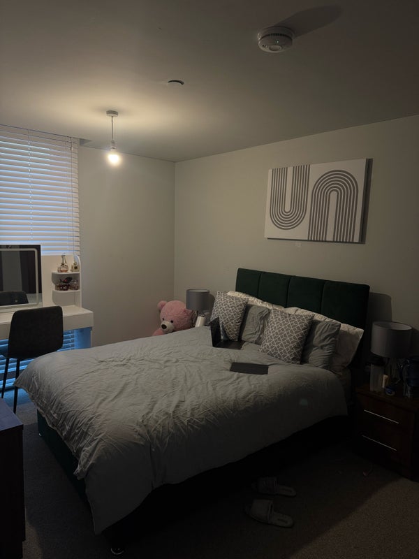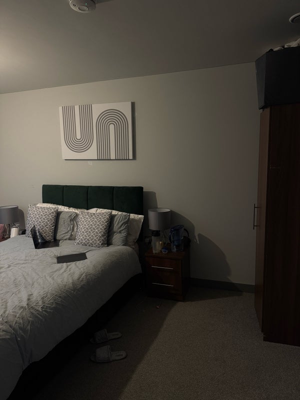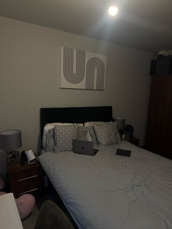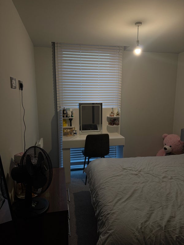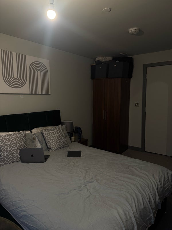 The room available is a double bed with an en-suite. It’s spacious, has it’s own bath/shower. The kitchen is also really spacious, clean, a new build and has one of the best views in Birmingham.