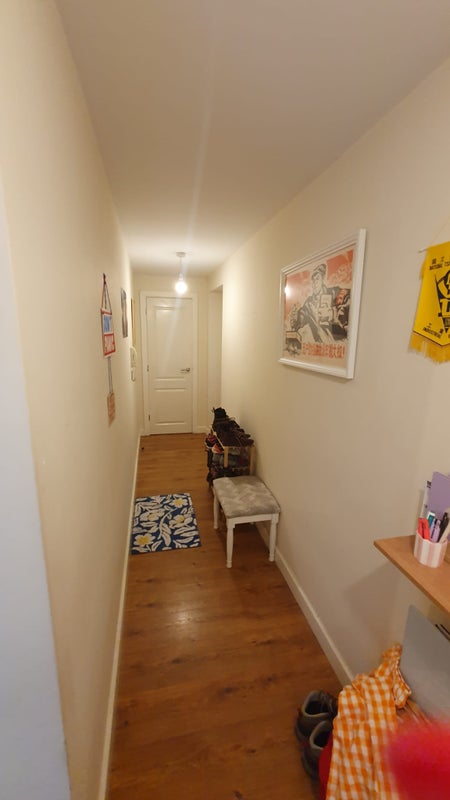 There's a shared living room-kitchen area and bathroom and the block of flats has a lift.