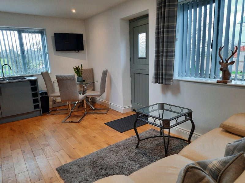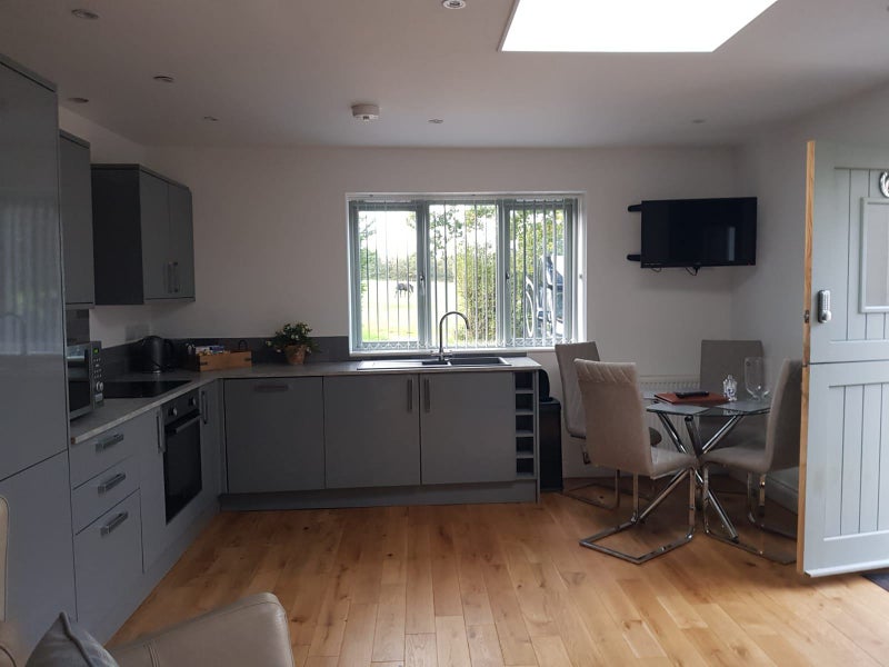 One bed barn/lodge conversion to rent on a farm and equestrian livery stables. Secure gated entrance off Bakers lane and long driveway into the courtyard to the Lodge for rent , fully furnished , one double bedroom, ensuite, lounge and contemporary open plan kitchen with fridge freezer, oven, hob, washing machine and dishwasher. Parking and outside terrace . Suitable for one person or a business couple. No children or pets. Available from 1st May 2023. Water and electricity, council tax included within the rent. No smokers. An ideal home for horse lovers.