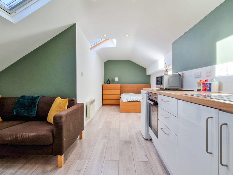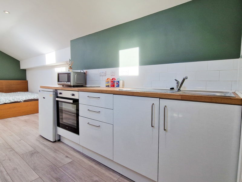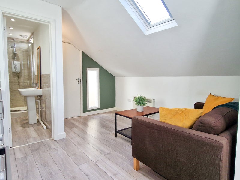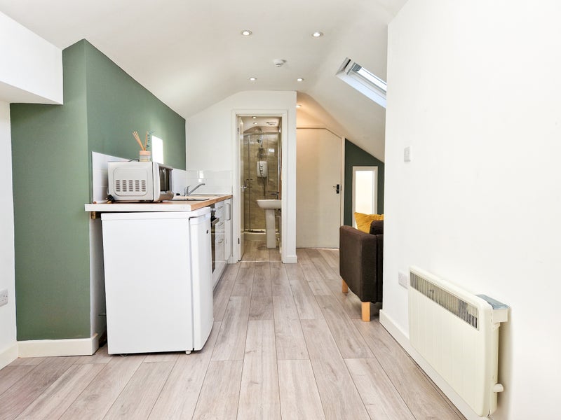 Be the first to live in this immaculately presented, modern studio. Complete with en-suite and kitchenette. Available fully furnished, the room consists of double bed, chest of drawers and wardrobe, fridge and washing machine.
