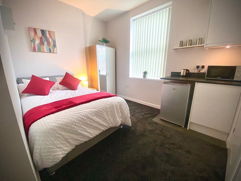 Rooms are fully furnished including 4ft double bed, plenty of storage, smart TV, Fridge (with ice box), Microwave and Kettle.