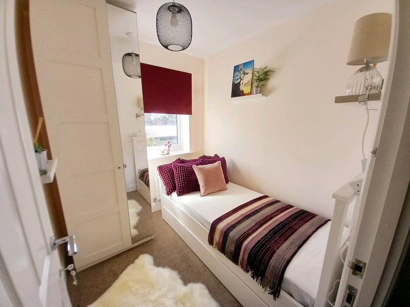 The room is a cozy single bedroom and has been beautifully decorated. With a state of the art HD Smart TV equipped with Netflix and Amazon Prime Video.