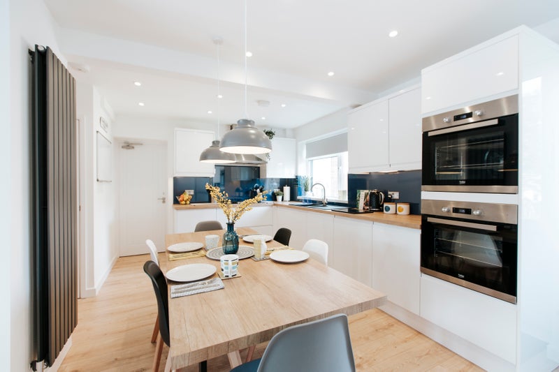 The hub of the house really begins in the bright and airy communal living/dining area. We have designed this space to offer an easy and relaxing co-living experience, with stylish furnishings, 4k smart TV for film nights, fully equipped kitchen and more!