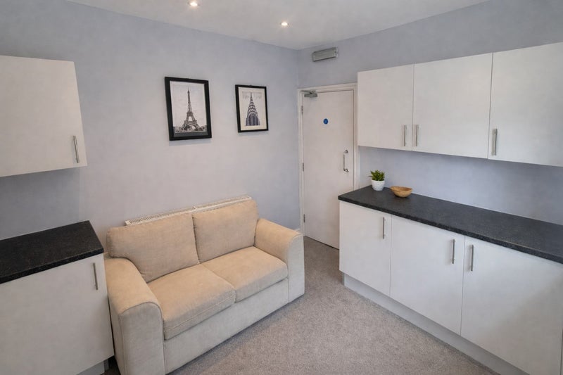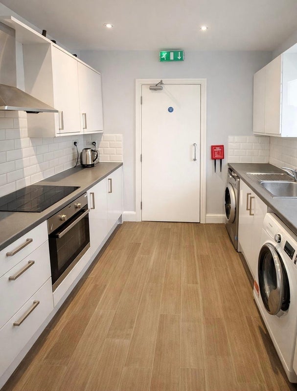 Electric cooker and hob, washing & drying machine, microwave and kettle. Ample space to store food with your own cupboard.