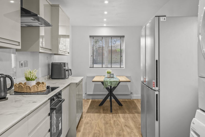 The kitchen leads out to a private rear garden, perfect for relaxing.