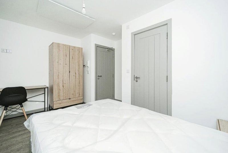 Wind down and enjoy a perfect night's sleep. Your bedroom comes complete with contemporary furnishings, featuring a double bed, a wardrobe, a bedside table, a desk and a chair.