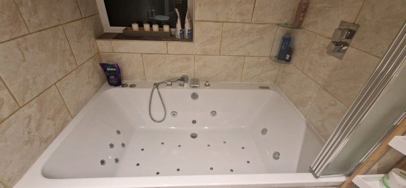 Two bathrooms in property, both have showers and toilets in them, main bathroom has a large jacuzzi bath in.