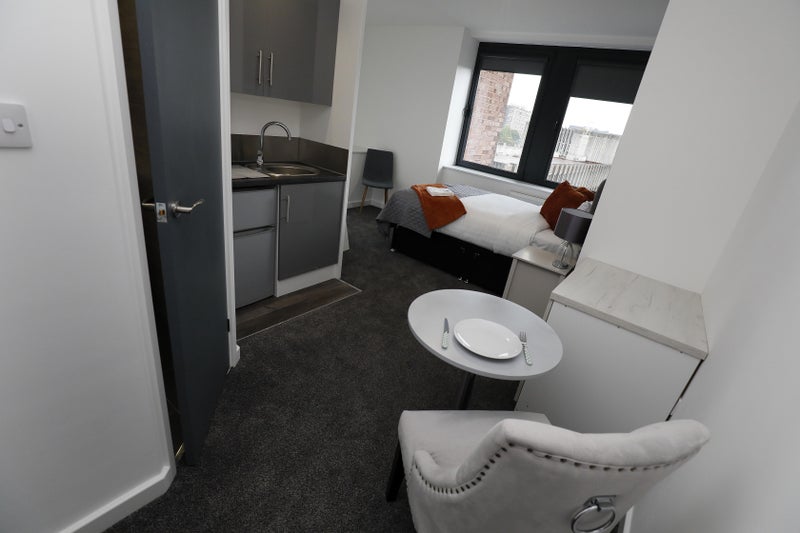 Your own private studio apartment will give you space and security. It will be fully furnished, consisting of an open-plan room with en-suite shower, kitchenette, and high-quality storage solutions. Large double-glazed windows provide fantastic views and natural lighting whilst you make the comfortable and homely space your own. Sidewinder blinds and a large, comfy bed ensure you'll always be able to rest easy.
