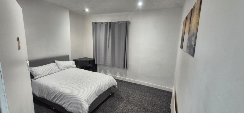 Room 2 is one of the larger fully furnished upstairs road side. Double room, newly renovated, with all new furniture, desk and blinds, curtains.