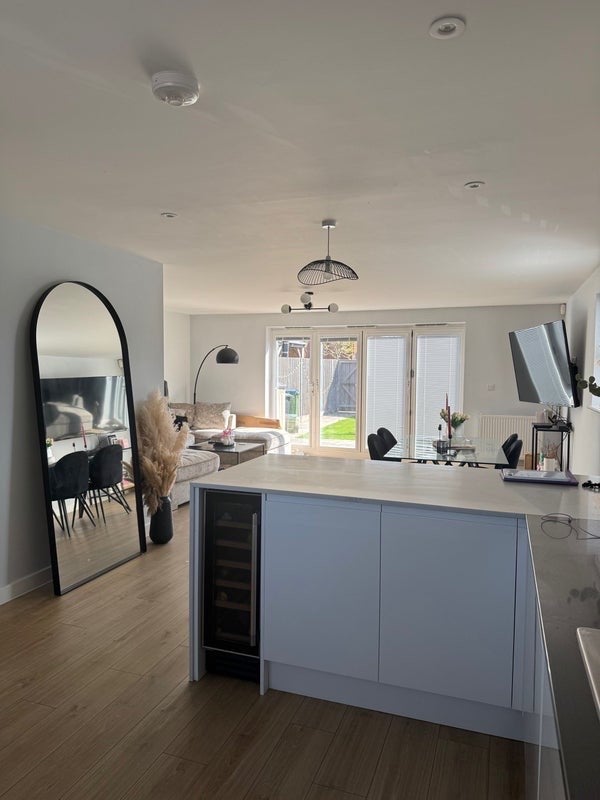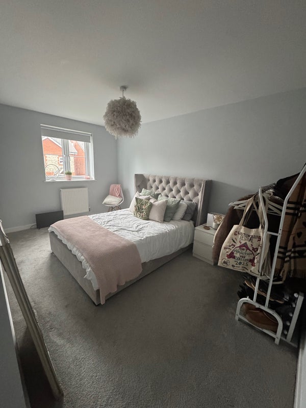 Clean, tidy, large house. The room includes double ottoman bed, bedside table, rails for clothes.