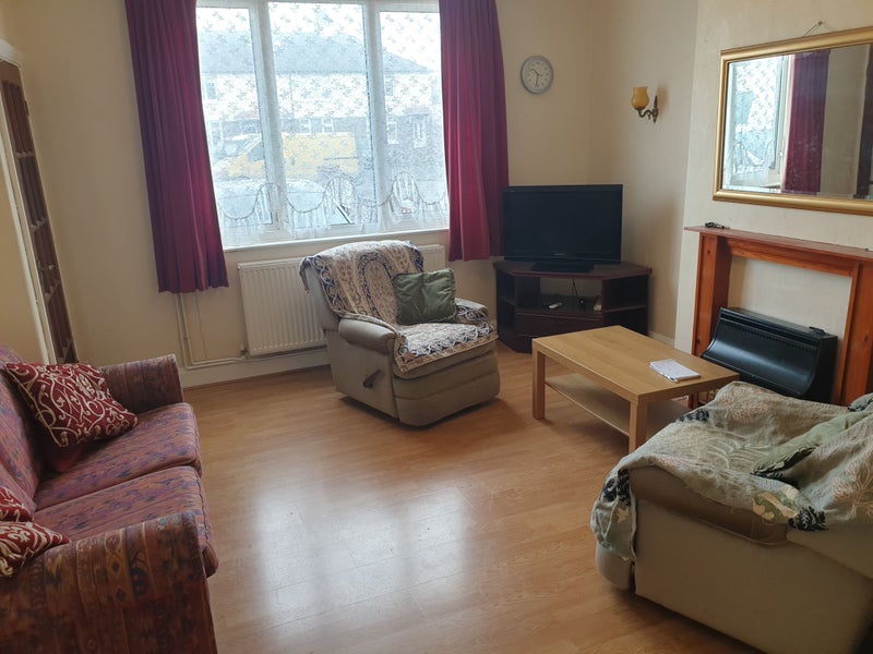ROOM 2: TAKEN - NOT AVAILABLE. Friendly Romanian guy lives here, very quiet, in his 30's, Deliveroo driver who works long hours. Doesn't cook. Smokes outside. Furniture in room: Single bed with 2 drawers, chest of drawers, wardrobe, lamp, laminate flooring. Space for small desk if desired.