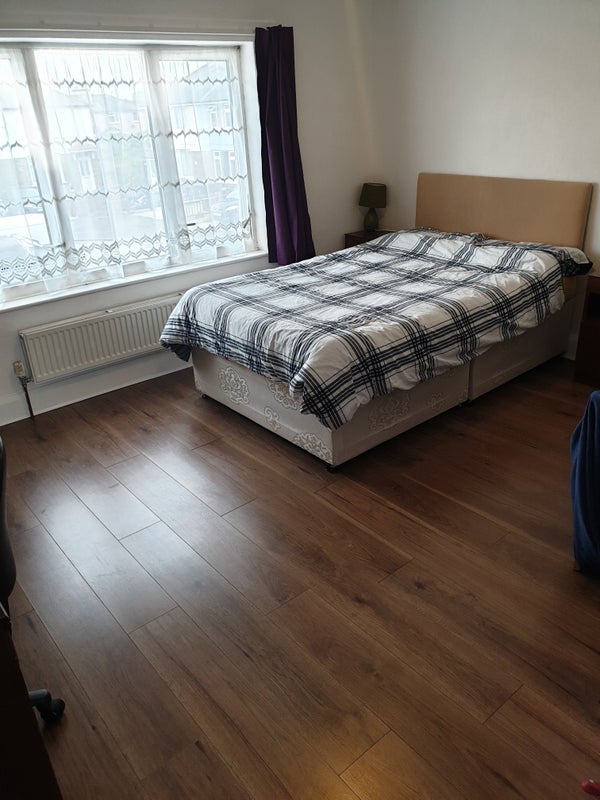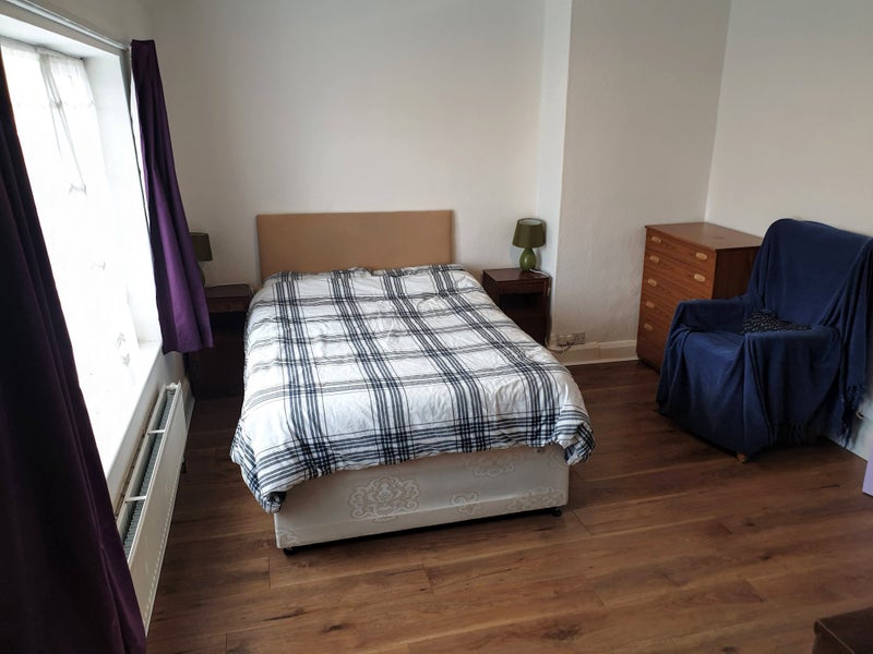 ROOM 1: AVAILABLE. Must be a clean, considerate person (as you'll be sharing kitchen/bathroom/lounge it's important to clean up after yourself). Double bed with 2 drawers, wardrobe, chest of drawers, desk, chair, laminate flooring, black-out curtains, lamp.