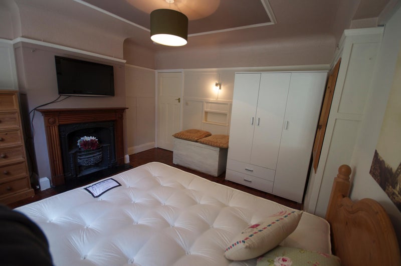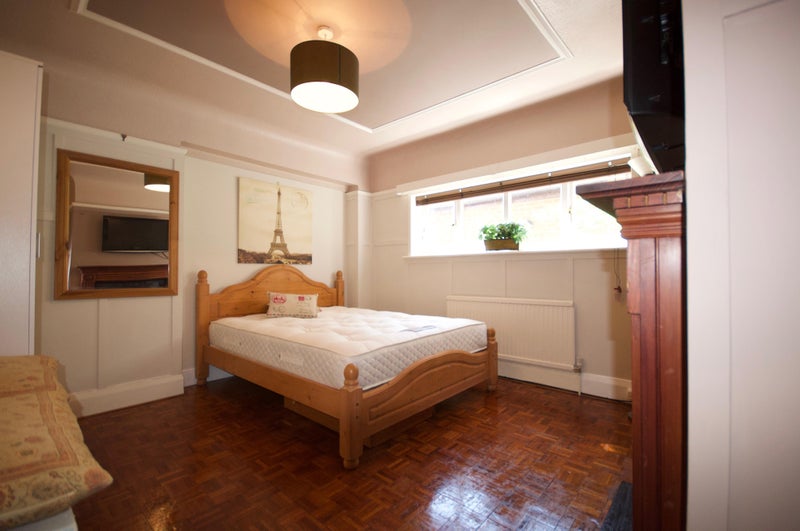 The room is furnished, including double solid wood bedstead with high quality mattress, plenty of storage - large wardrobe and separate drawers.