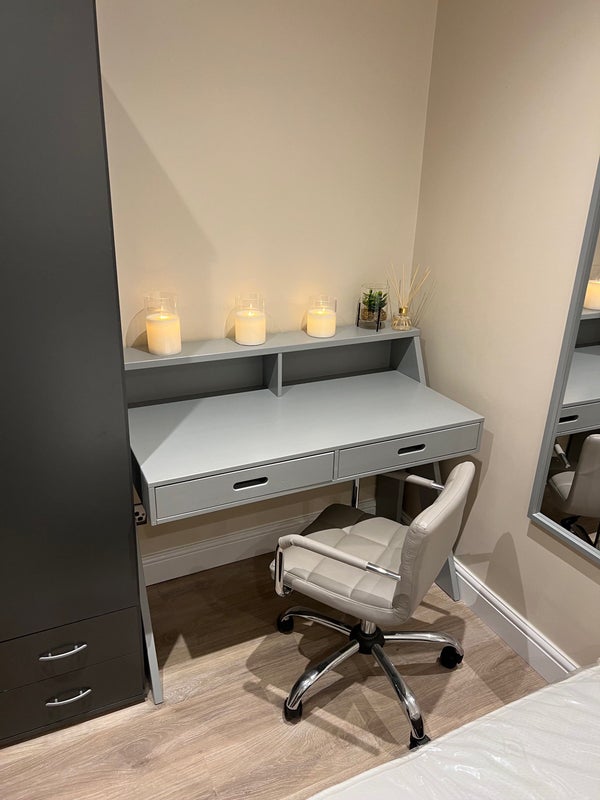 Recently refurbished cozy small double room available This house is conveniently located at a 2-minute walk to the local shops, 5 minutes on foot to Three Bridges Station, and a 10-minute bus ride to Gatwick Airport. Rent covers all utility bills.