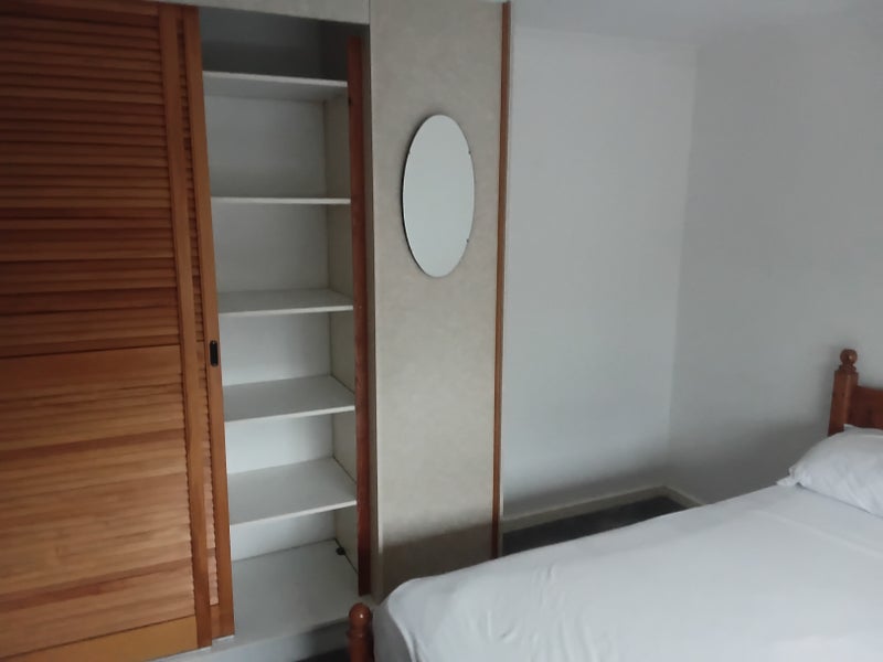 The room comes with a large spacious wardrobe with mirrors, double bed with mattress (with easily accessible storage underneath) and chest of drawers. There's no desk in the room, but the potential lodger is welcome to place their own desk if required, there's enough space for small sized desk.