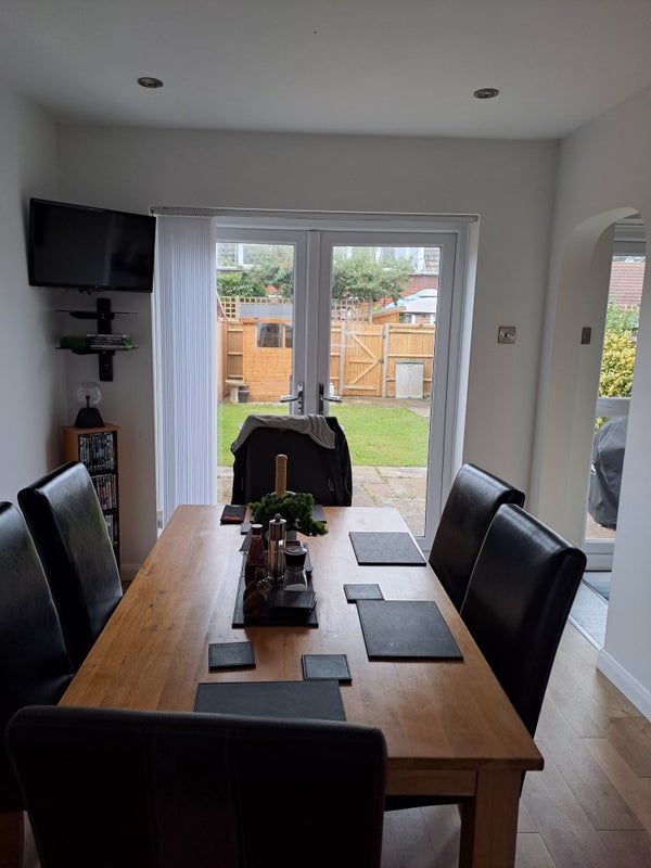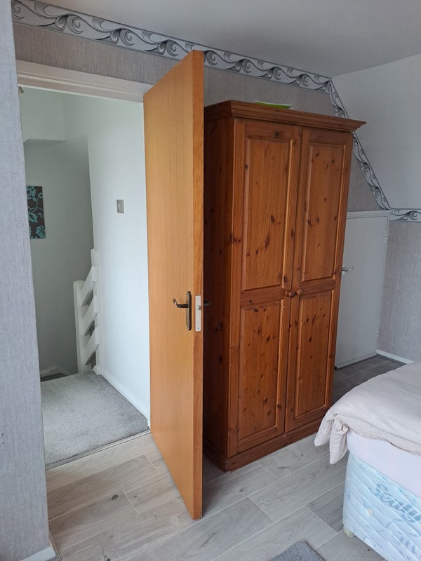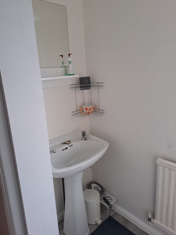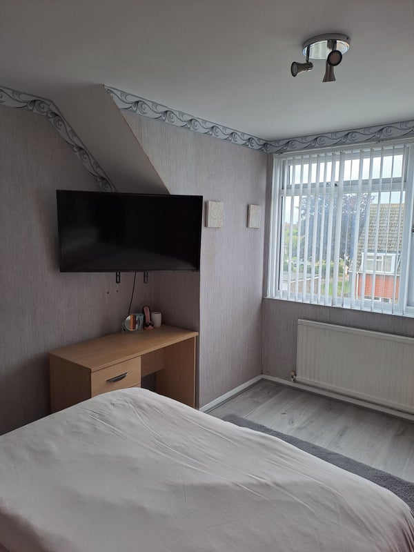 Double room ,top floor own toilet and sink . Quiet area and south facing back garden ,all facilities free to use, Washing machine, hob. oven . smoking area is in the garden as no smoking in the house .off road parking with your own parking space