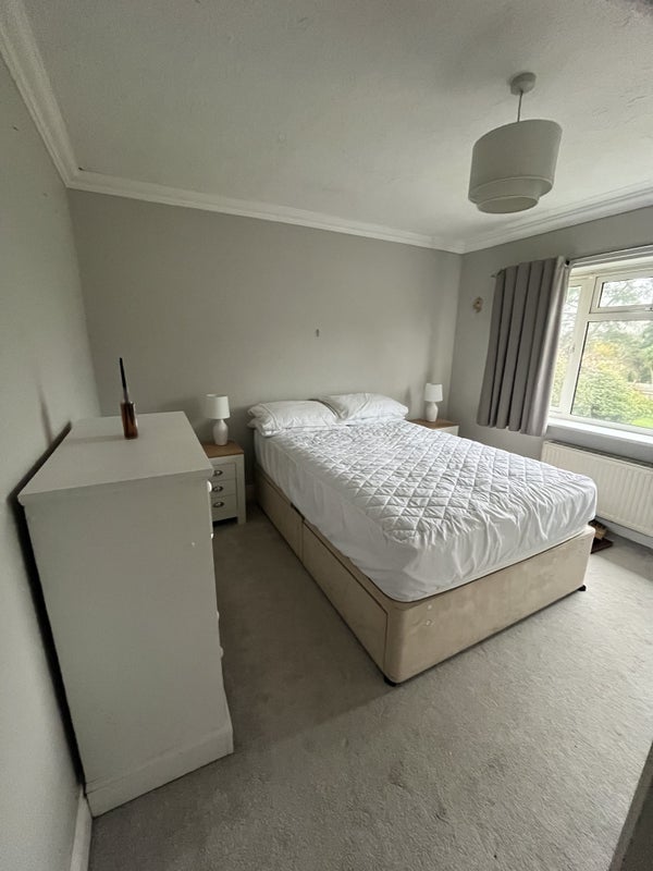 Double room available from 31.3.26 in cul de sac 15min walk to town centre/train station. 20 min drive to Gatwick. Shared kitchen own fridge large garden with patio area
