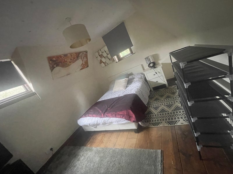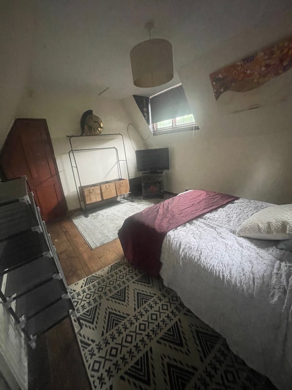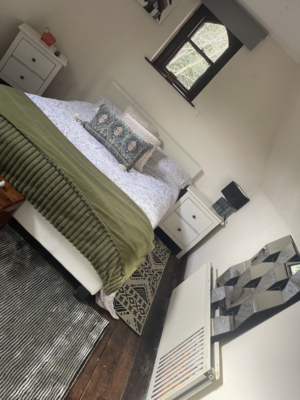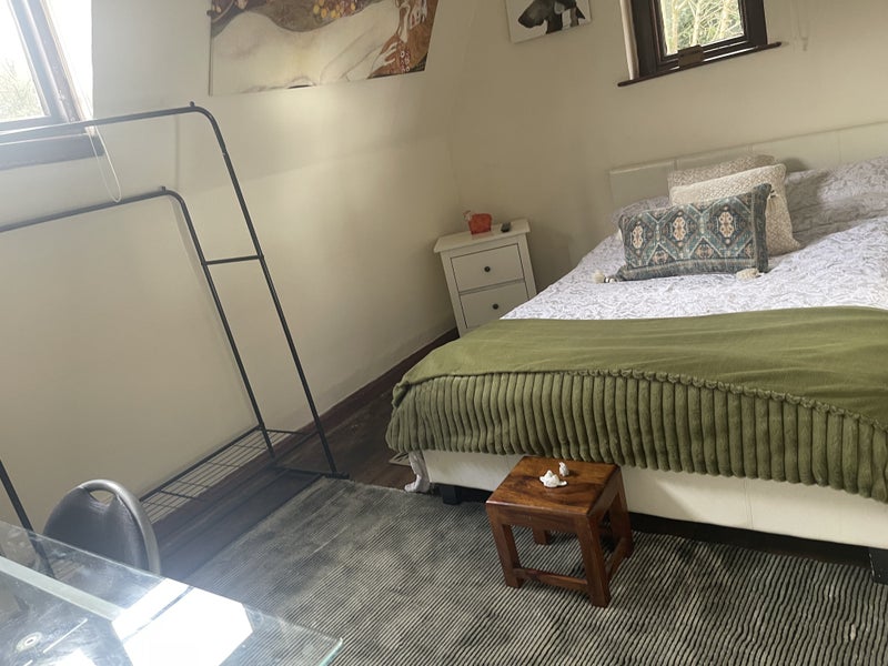 Large double size room for single professional , with shared bathroom next to room. Suit quiet professional person. (No couples or people with children). Live in land lord. Close to shops and 8 minute walk to Queen Victoria Hospital, East Grinstead . Good links to London, Croydon, Crawley and Gatwick. Country location, lots of nice walks. Parking available for 1 car. Shared kitchen. Extra space available outside room. Mostly self contained. Bills included. Deposit and reference required. Must like animals. Non smoker. No unemployed or students please.