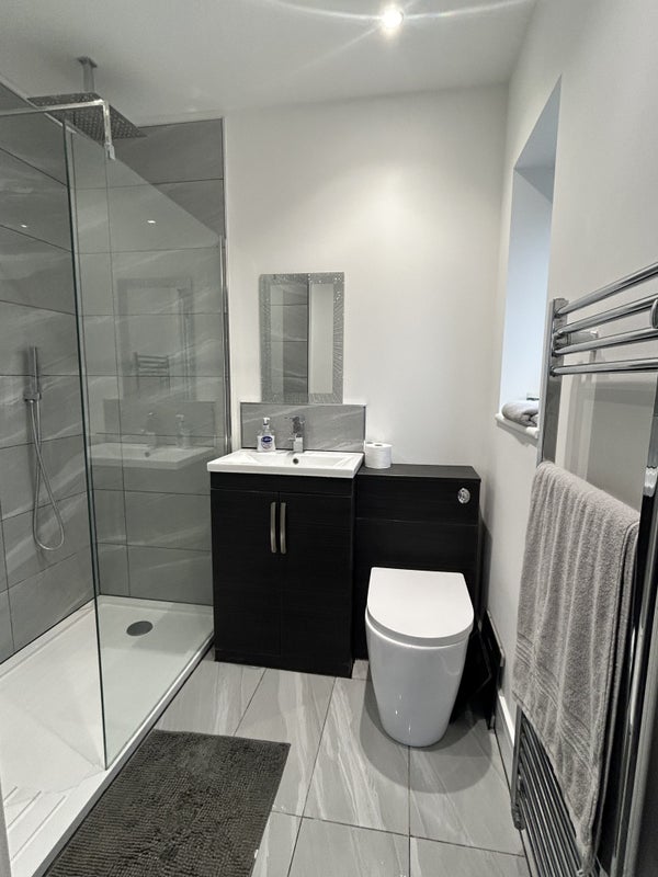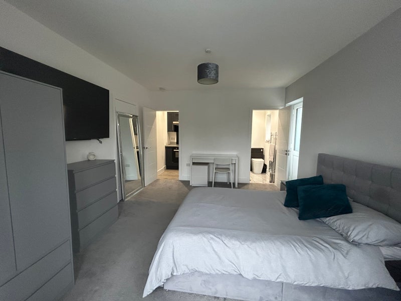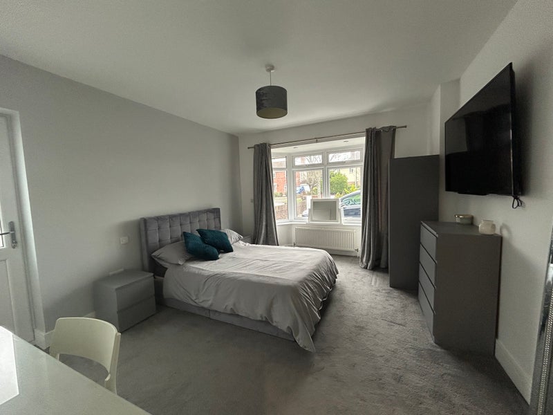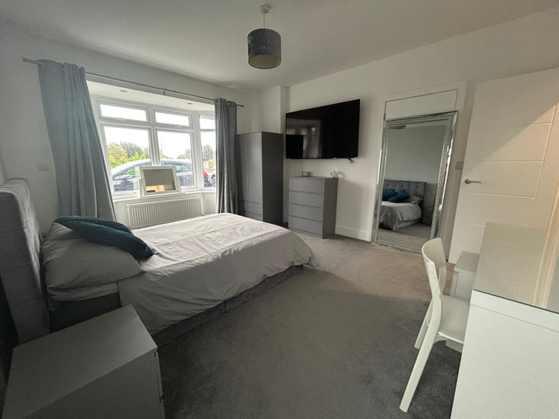 Large double bedroom in Goring with separate access. Modern En suite shower room and new kitchen with sink, hob, oven, fridge freezer and utensils for your cooking needs. Double bed with storage, double wardrobe , drawers, table and chair, large tv with broadband and Virgin box (currently sky sports and movies). Just over 5 minute walk to train station, beach and Goring town, with pubs, restaurants, cafes and well known high street supermarkets.