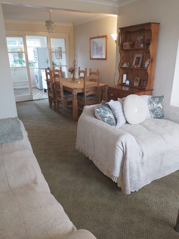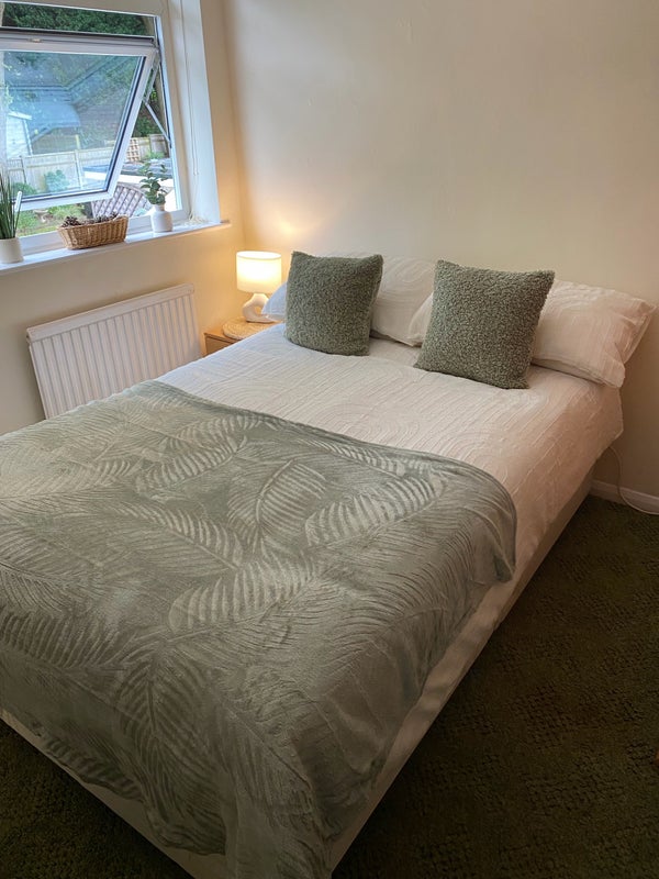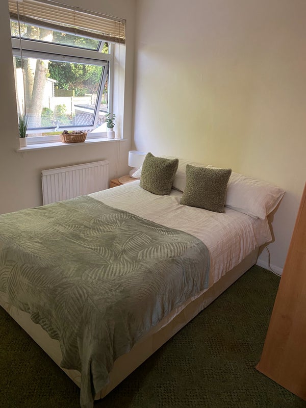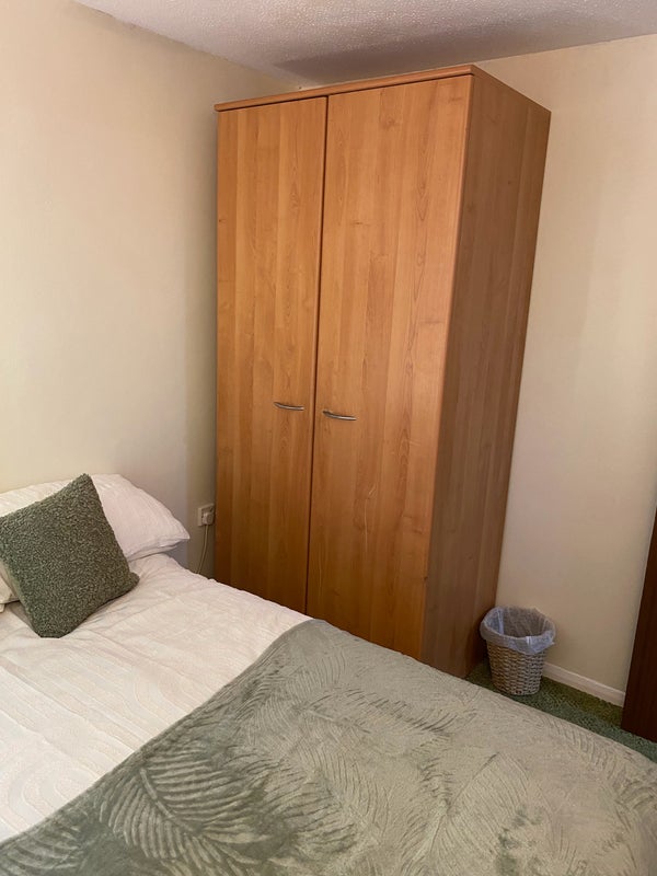 Small double room . Shared bathroom and kitchen and some use of lounge . Wardrobe and bed and side table .