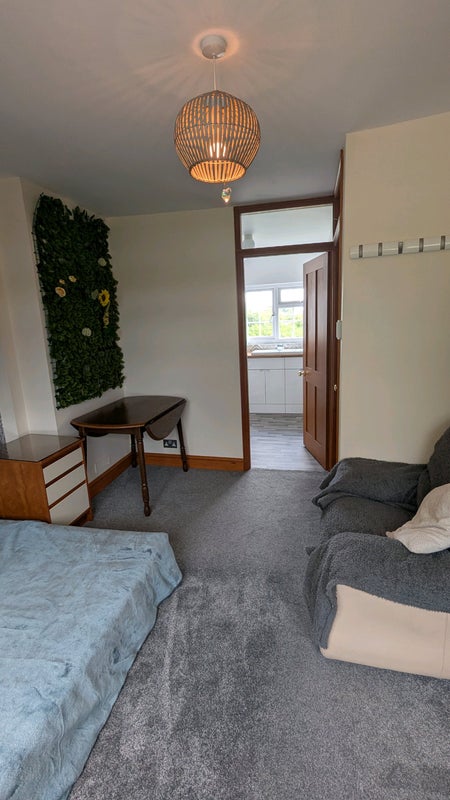 I a beautifully decorated large super king room available to rent, with adjacent private bathroom. Right next to the forest.