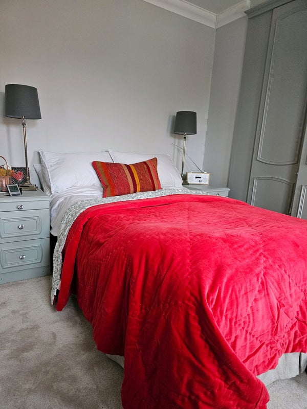 Lovely comfortable large double room with en-suite bathroom in central town position. Fully furnished with large fitted wardrobe and chest of drawers.