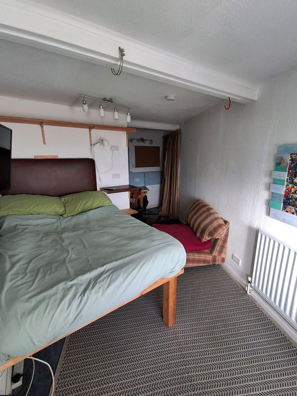 I am looking for a single person to rent the downstairs double bedroom. The room consists of a double bed, a walk in wardrobe/dressing room and study area with fixed desk, a fridge, a sofa and a smart television with WiFi. Loads of storage space to this room.