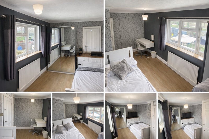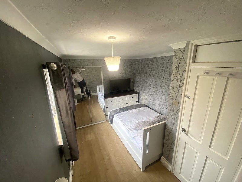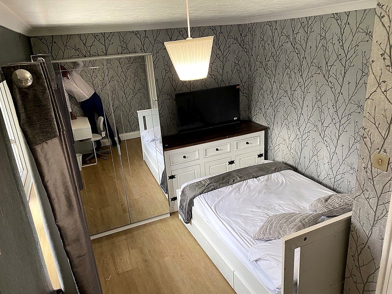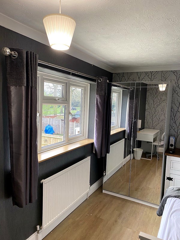 Large bright double room in a clean, quiet home in Cloverlands, Crawley RH10. Perfect for Gatwick Airport staff, especially cabin crew or shift workers.
