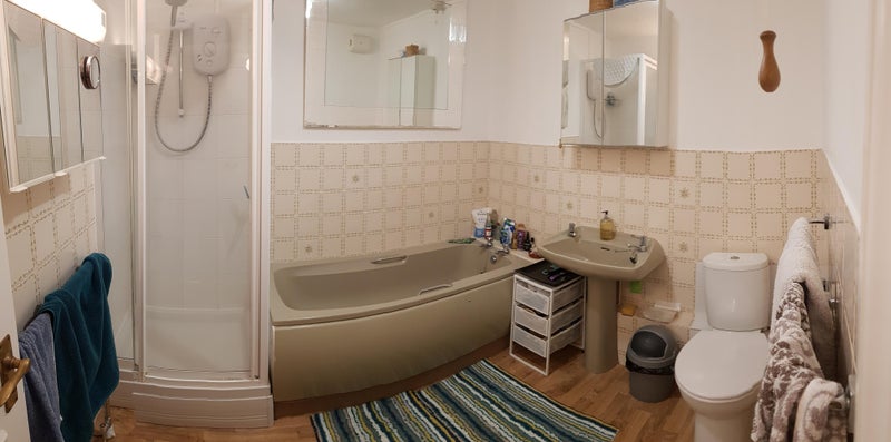 The room for rent is a fully furnished double room with built-in wardrobe, TV, drawers, comfortable chair, double bed and a southerly aspect, with it's own toilet/small bathroom directly opposite the room (see notes below). There is a shower and bath in the main large bathroom - which we will share. The kitchen is fully equipped and available to you - with a dining area/breakfast bar. The apartment is situated on the 1st floor of a 16 apartment characterful block very close to the beach (5min walk) and Worthing town centre (10min walk). There is a lift and stairs in the block.