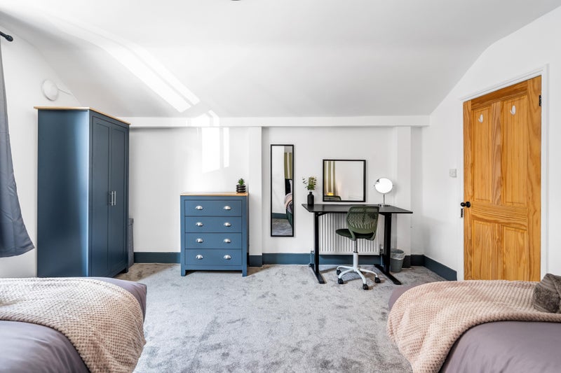 Master Bedroom: Versatile and comfortable, it can be arranged as a superking or two twin beds. Complete with all essential plug points, a spacious wardrobe, drawers, and luxurious linen. It also features a vanity or work area for your convenience.