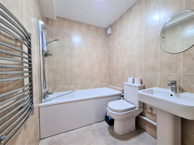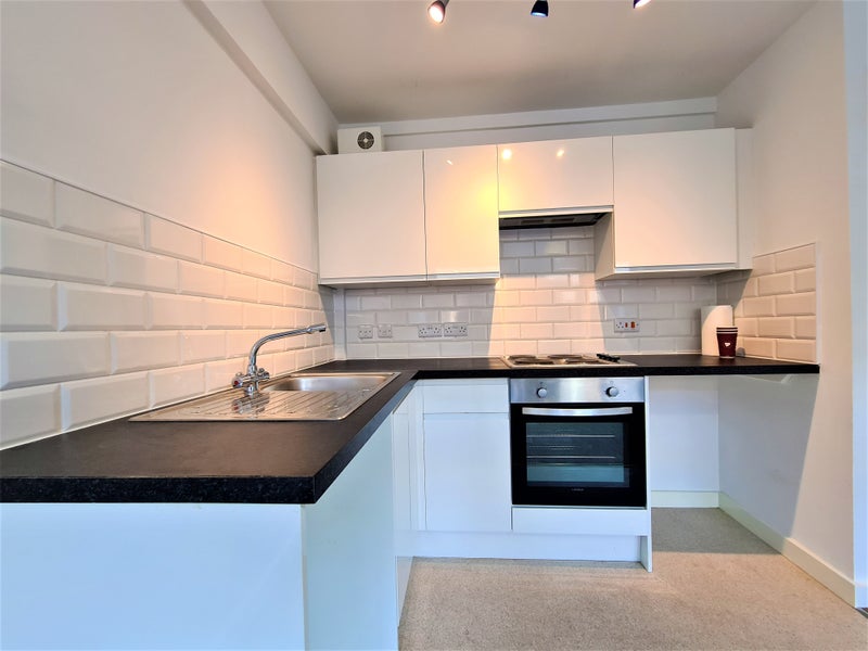 Modern fully tiled bathroom, shower over the bath. Good size double bedroom, light & bright. Modern open plan lounge/kitchen. Kitchen comprises of built in hob/oven, space and plumbing for washing machine. Plain and neutral decor throughout. Double glazing