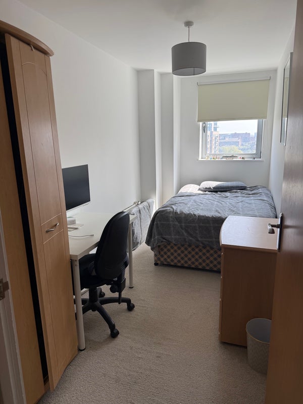 Spacious Room with a 2Door closet and a full chest of drawer along with a work desk and high speed internet available.