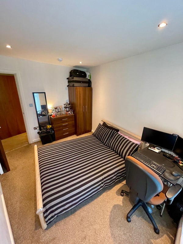 The room offered is a double bedroom with your own full bathroom. It has a double bed, chest of drawers and a wardrobe. There is off -street parking available (paid). The apartment has double glazed windows with electric heating.