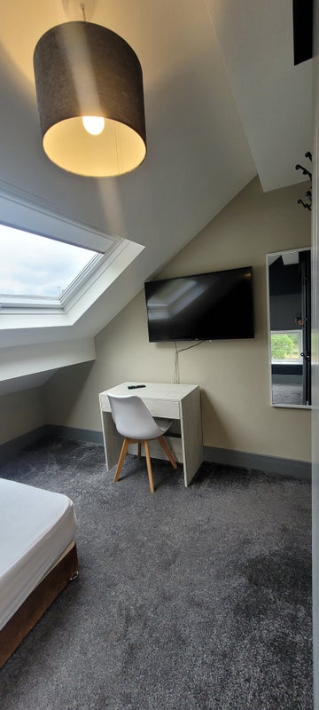 ✅ Beautifully furnished top-floor room with a double bed, wardrobe, dresser & work desk.